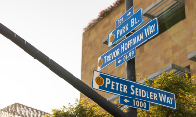 Un reconocimiento permanente al querido propietario de los Padres, marcado con tres letreros desde Park Blvd de Imperial Ave a Park...