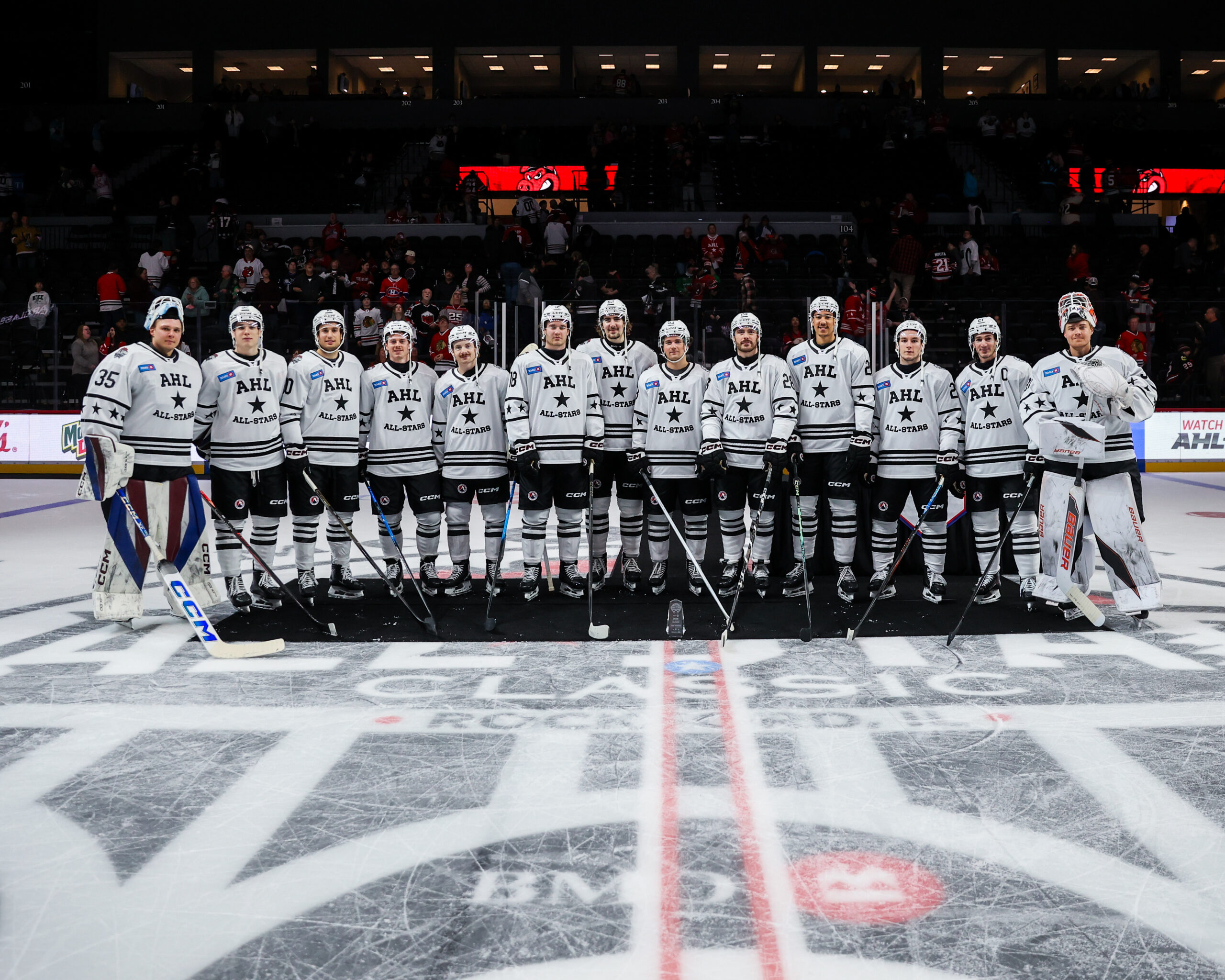 ROCKFORD, Illinois.– Vestido con el llamativo jersey naranja del décimo aniversario de los San Diego Gulls, el guardameta Calle Clang no tardó en robarse los reflectores durante el arranque del 2026 AHL All-Star Classic, celebrado en el BMO Center.