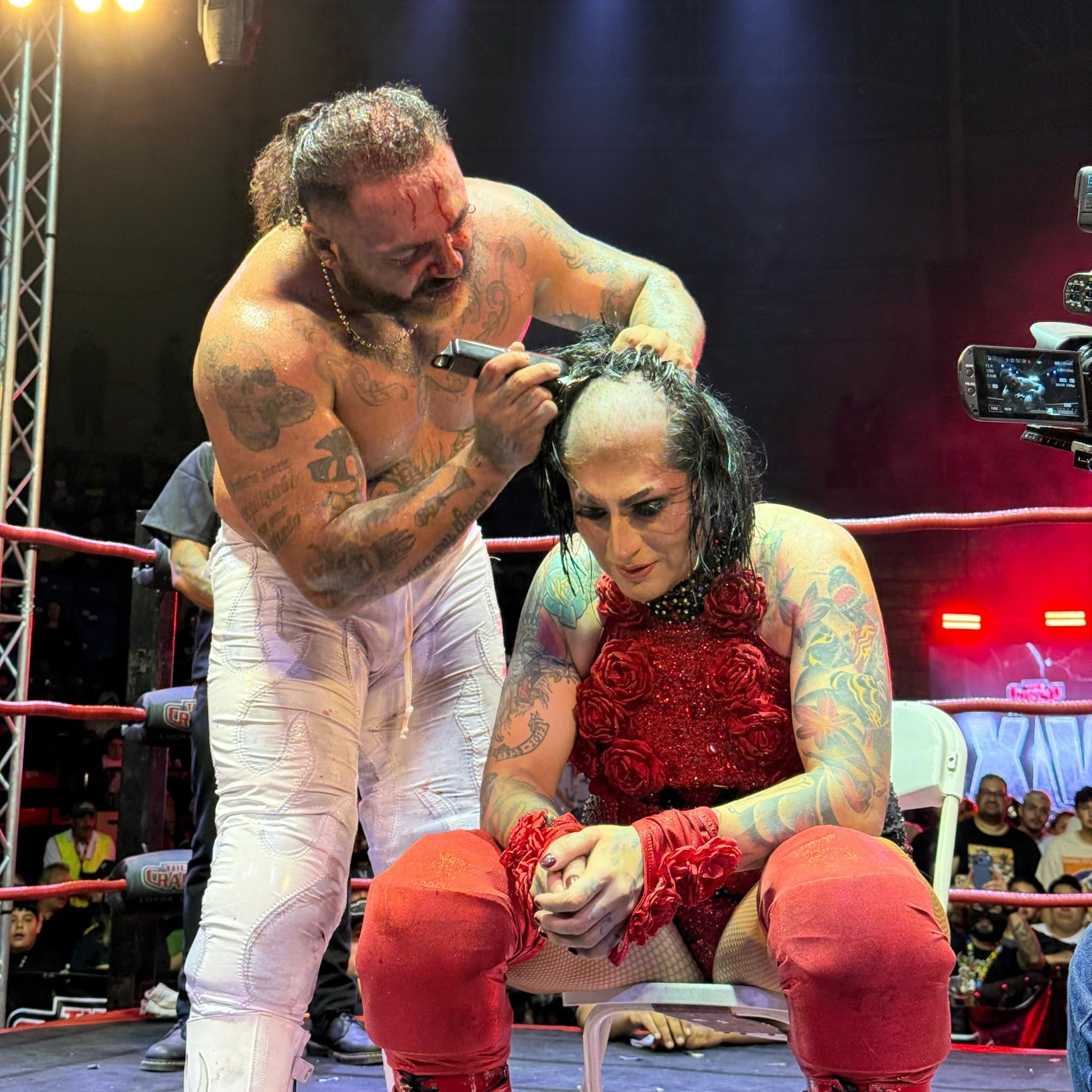 TIJUANA, Baja California.- Demonio Infernal se impuso a Mamba en la lucha estelar de cabelleras que cerró el 14° Aniversario de The Crash Lucha Libre, celebrado en el Auditorio Municipal “Fausto Gutiérrez Moreno”. El desenlace llegó con el Demonio Driver, castigo con el que enganchó a su rival, le cruzó los brazos y lo azotó de nuca contra la lona para la cuenta definitiva. La derrota significó la segunda ocasión en que Mamba pierde la cabellera.