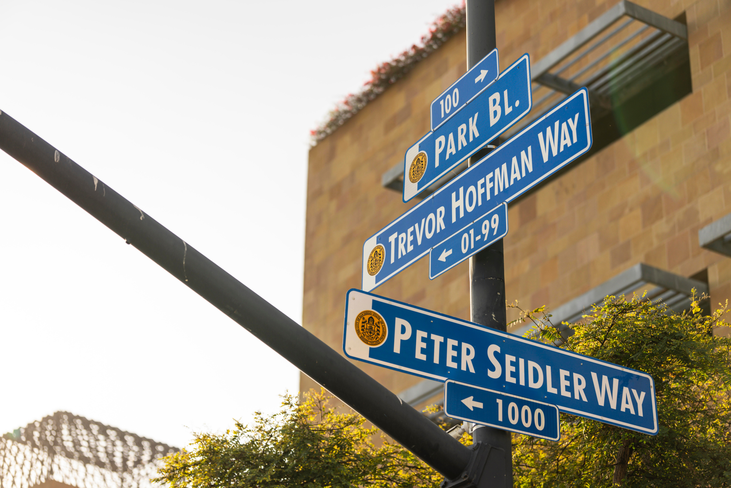 Un reconocimiento permanente al querido propietario de los Padres, marcado con tres letreros desde Park Blvd de Imperial Ave a Park 12