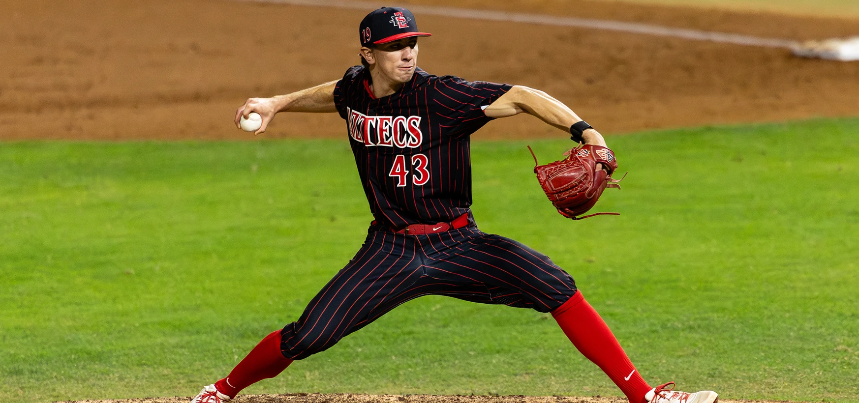 El derecho junior, transferido desde Arizona State, consiguió su primera victoria colegial tras lanzar 6.2 entradas casi perfectas, permitiendo solo dos hits y dos bases por bolas mientras ponchaba a 10 bateadores, igualando su mejor marca personal por segundo inicio consecutivo.