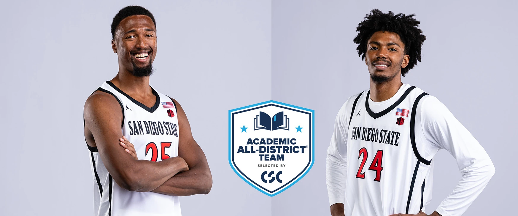SAN DIEGO, California.— Los jugadores de San Diego State, Taj DeGourville y Jeremiah Oden, fueron incluidos este martes en el Equipo Académico All-District 2025-26 de College Sports Communicators, un reconocimiento que representa el primer paso en el camino hacia una posible distinción como Academic All-America.