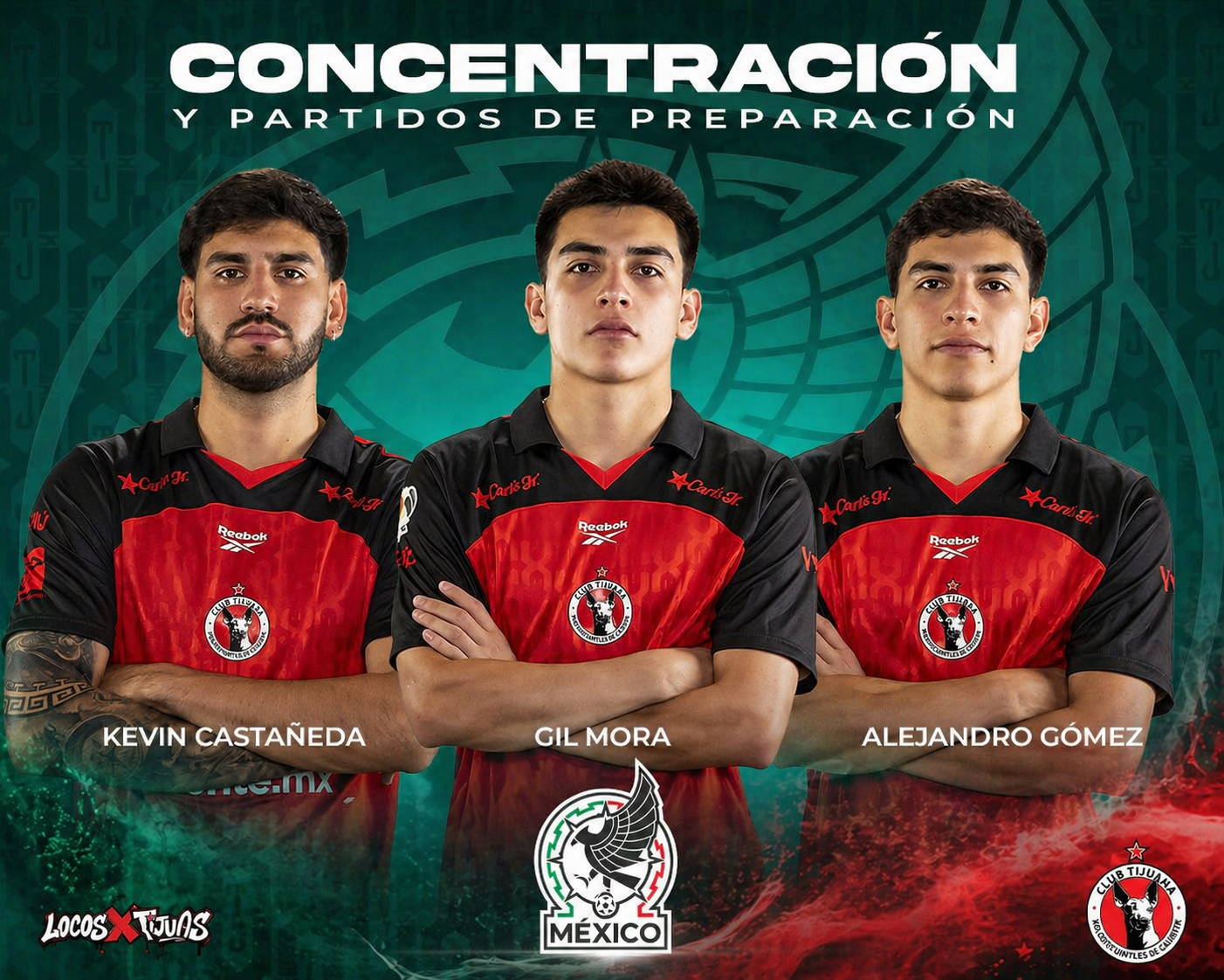 TIJUANA, Baja California.— La Selección Nacional de México dio a conocer la lista de jugadores convocados para la concentración inicial rumbo a la Copa del Mundo de 2026, en la que destacan tres futbolistas del Club Tijuana: Gilberto Mora, Kevin Castañeda y Alejandro Gómez.